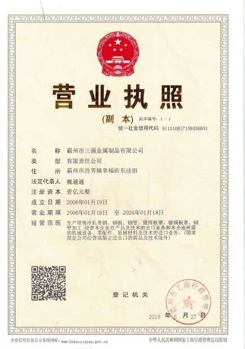 河北霸州市三強金屬制品有限公司坐落于歷史文化名鎮(zhèn)-------勝芳鎮(zhèn),是一家集中寬帶光亮帶鋼、熱鍍鋅帶鋼、精密制管、優(yōu)質(zhì)鋼等產(chǎn)品開發(fā)、生產(chǎn)、銷售于一體的鋼鐵聯(lián)合企業(yè)。公司創(chuàng)建于2006年,占地面積142300平方米,注冊資金1億元,現(xiàn)有員工600多人,年產(chǎn)1000mm以下冷軋薄帶100萬噸。產(chǎn)品廣泛應用于汽車、家電、建筑、橋梁、電子等行業(yè)。產(chǎn)品規(guī)格全、質(zhì)量好、售后有保障。是廣大終端用戶、鋼貿(mào)商理想的可持續(xù)合作伙伴。